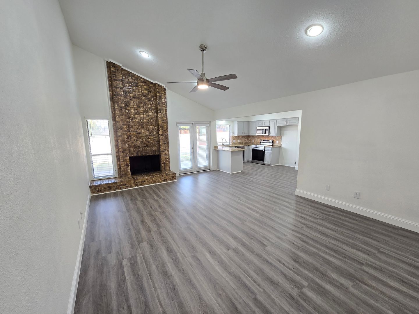 This is a recently renovated, freshly painted one story 4 bedroom 2 bath home in southeast Carrollton right next to Addison and just north of Farmers Branch. This home features new, high quality lvp flooring throughout, granite counters in the kitchen, and stainless steel appliances. The living room has a vaulted ceiling and includes a wood burning fireplace. This room opens up to a wonderful kitchen with a tiled backsplash that overlooks the backyard. The kitchen then opens up to the dining room with a pass through wetbar to create a nice open flow. Large backyard with plenty of space and a new fence.